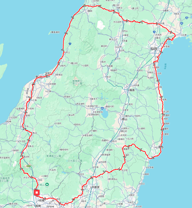 新潟の海岸線を北上し、日本海から太平洋へのCtoCで仙台についたら、その後は太平洋の海岸線を南下します。